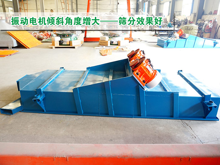 在振動電機的功率大小與振動篩型號匹配的情況下,振動電機的傾斜角度我們都采用標(biāo)準(zhǔn)角度:45度,如果增大傾斜角度篩,會使篩上物水平受力就會減小,簡單來說就是物料在篩面的上下跳動幅度會加高,物料向前運動的速度就會減慢,這樣就能達到精篩的效果,即篩分效果好。