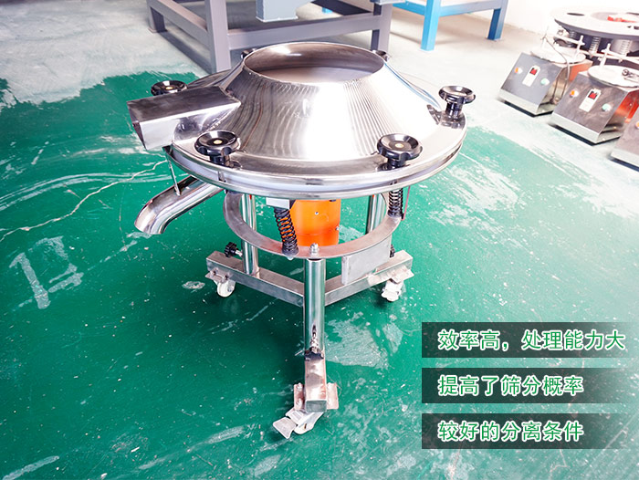 高頻振動(dòng)篩篩面振動(dòng)頻率為50Hz,振幅為0~2毫米,振動(dòng)強(qiáng)度為重力加速度的8~10倍,是一般震動(dòng)篩振動(dòng)強(qiáng)度的2~3倍,所以篩面不易粘網(wǎng)、堵孔,分級(jí)粒度0.074~1mm,特別適用于液體或細(xì)粒粉體物料的篩分。