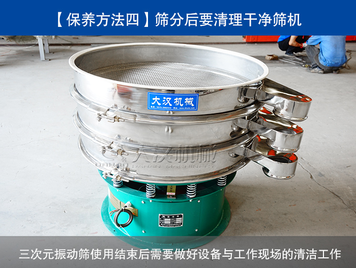 三次元振動(dòng)篩使用結(jié)束后需要做好設(shè)備與工作現(xiàn)場(chǎng)的清潔工作