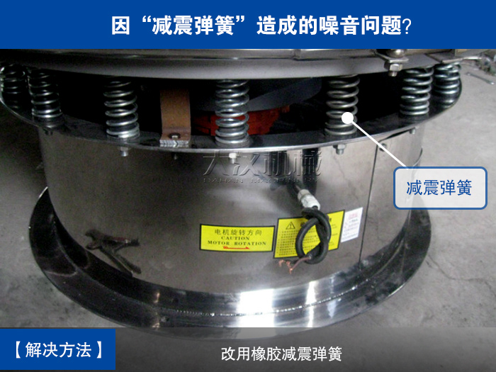 三次元振動(dòng)篩在篩分過程中如果采用鋼絲減震彈簧會(huì)發(fā)生彈簧與支座之間發(fā)生摩擦產(chǎn)生噪音,所以可改成橡膠材質(zhì)的減震彈簧。