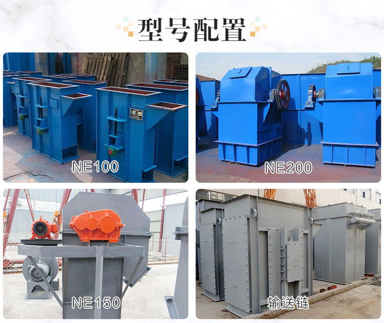 散裝物料板鏈斗式提升機(jī)擁有大小不同的11種型號(hào)以及不同配置,型號(hào)有NE15、NE30、NE50 、NE100、NE150、NE200、NE300、NE400、NE500、NE600、NE800等,不同大小型號(hào)的提升機(jī)配置(料斗、鏈條、振動(dòng)電機(jī))選用的都不同所以價(jià)格也會(huì)有所不同,提升產(chǎn)量越大所選擇的料斗規(guī)格與電機(jī)功率也就越大。