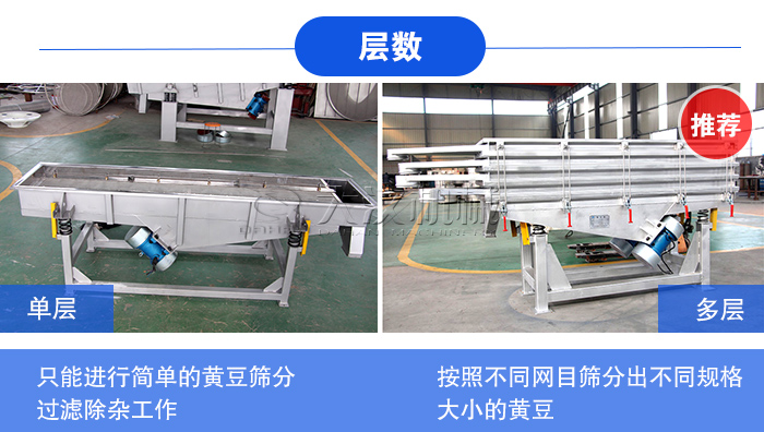 黃豆精選不銹鋼直線篩在篩網(wǎng)安裝的層數(shù)上支持單層和多層,其中最高可達(dá)五層,能篩分出六種不同規(guī)格的物料,功能非常的強(qiáng)大,所以結(jié)構(gòu)越復(fù)雜,價(jià)格就會(huì)對(duì)應(yīng)增加。