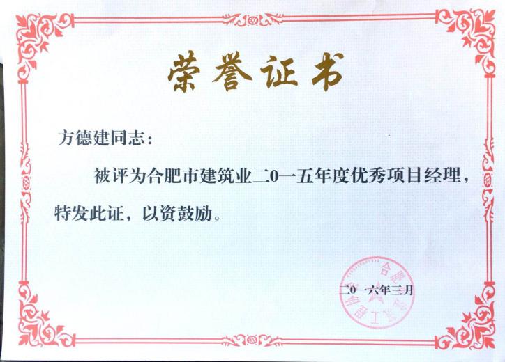 >2015年度優(yōu)秀項目經(jīng)理方德建