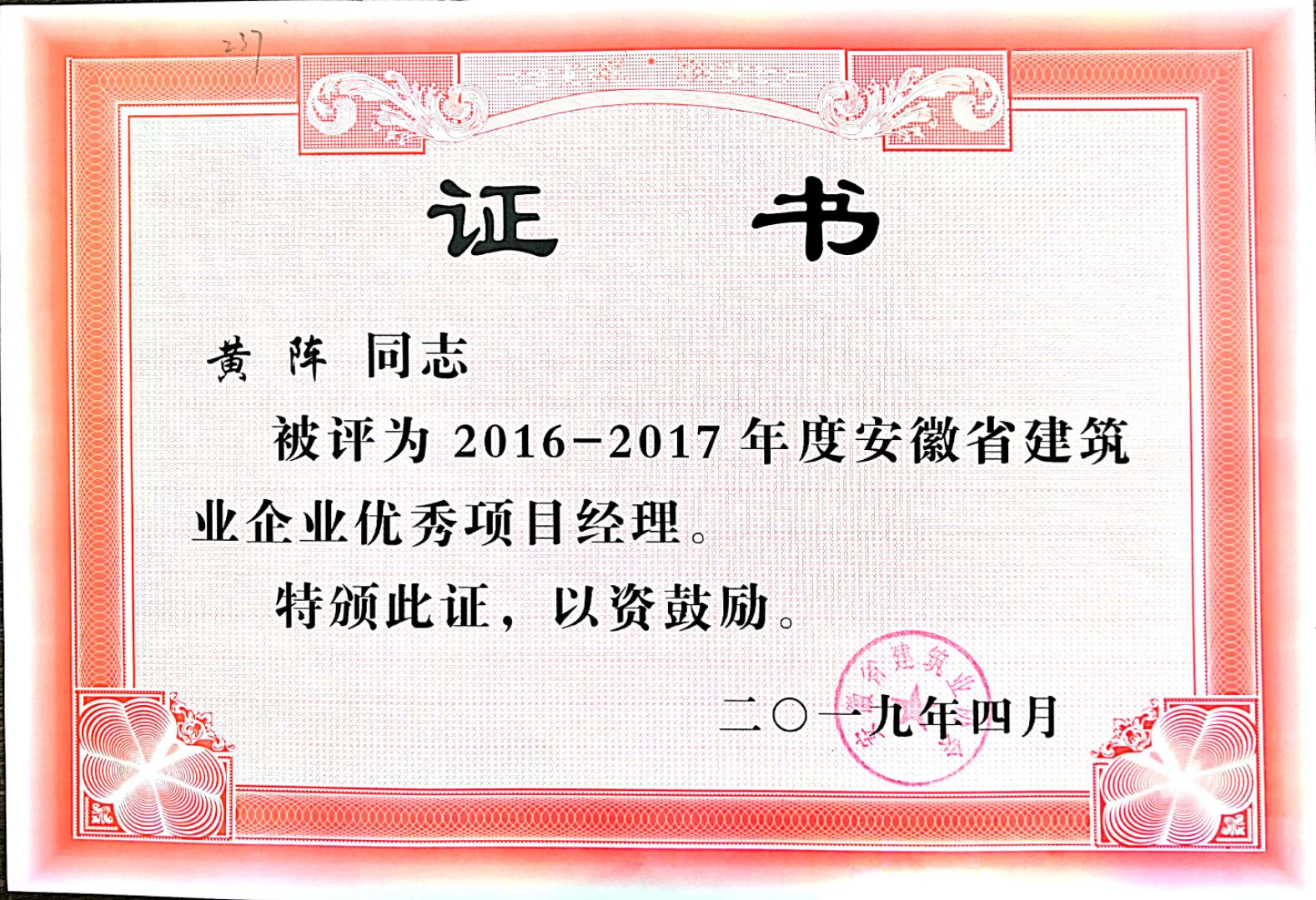 >2016-2017年安徽省建筑業優秀項目經理——黃陣
