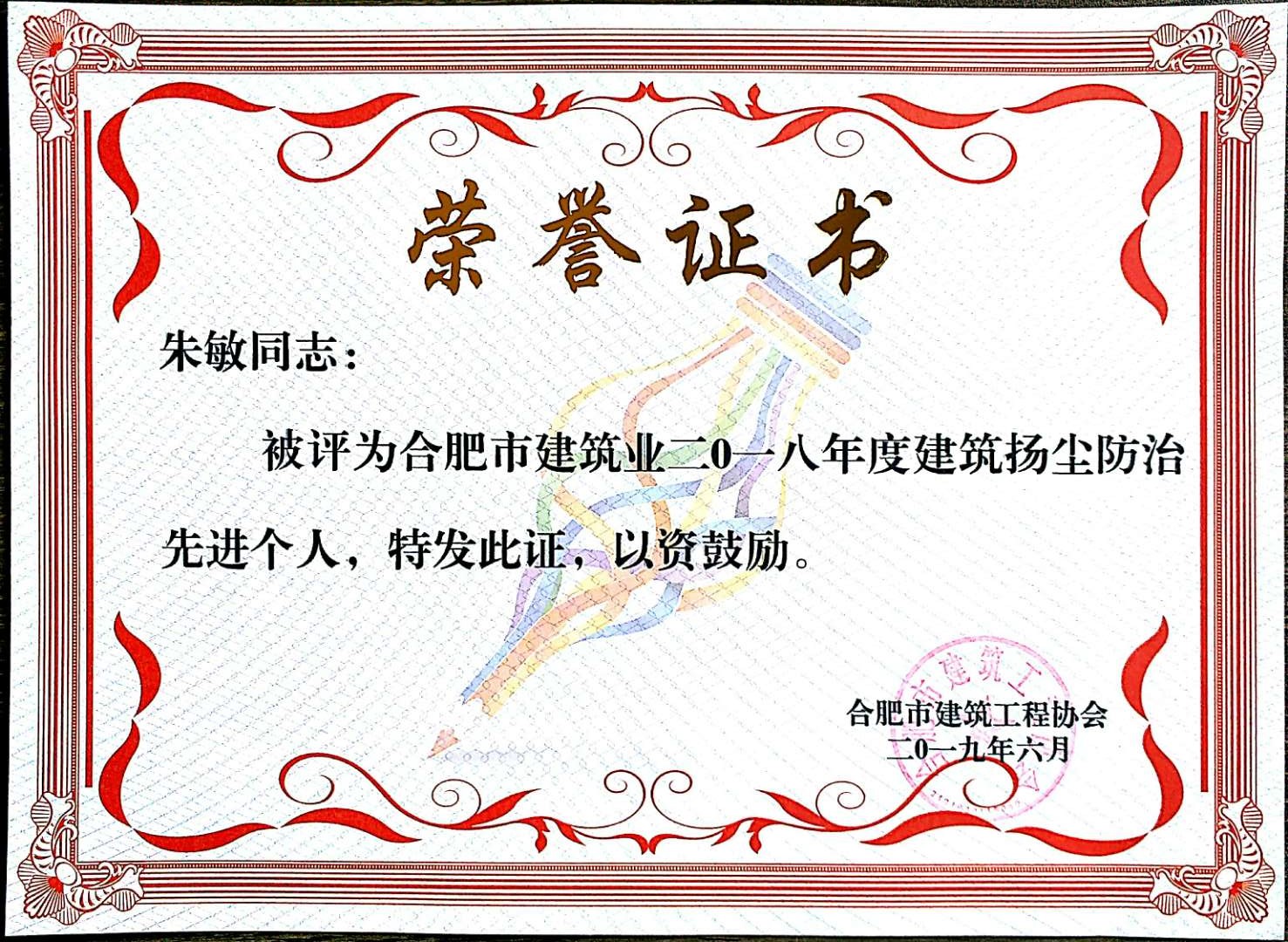 >朱敏2018年防塵優(yōu)秀個(gè)人