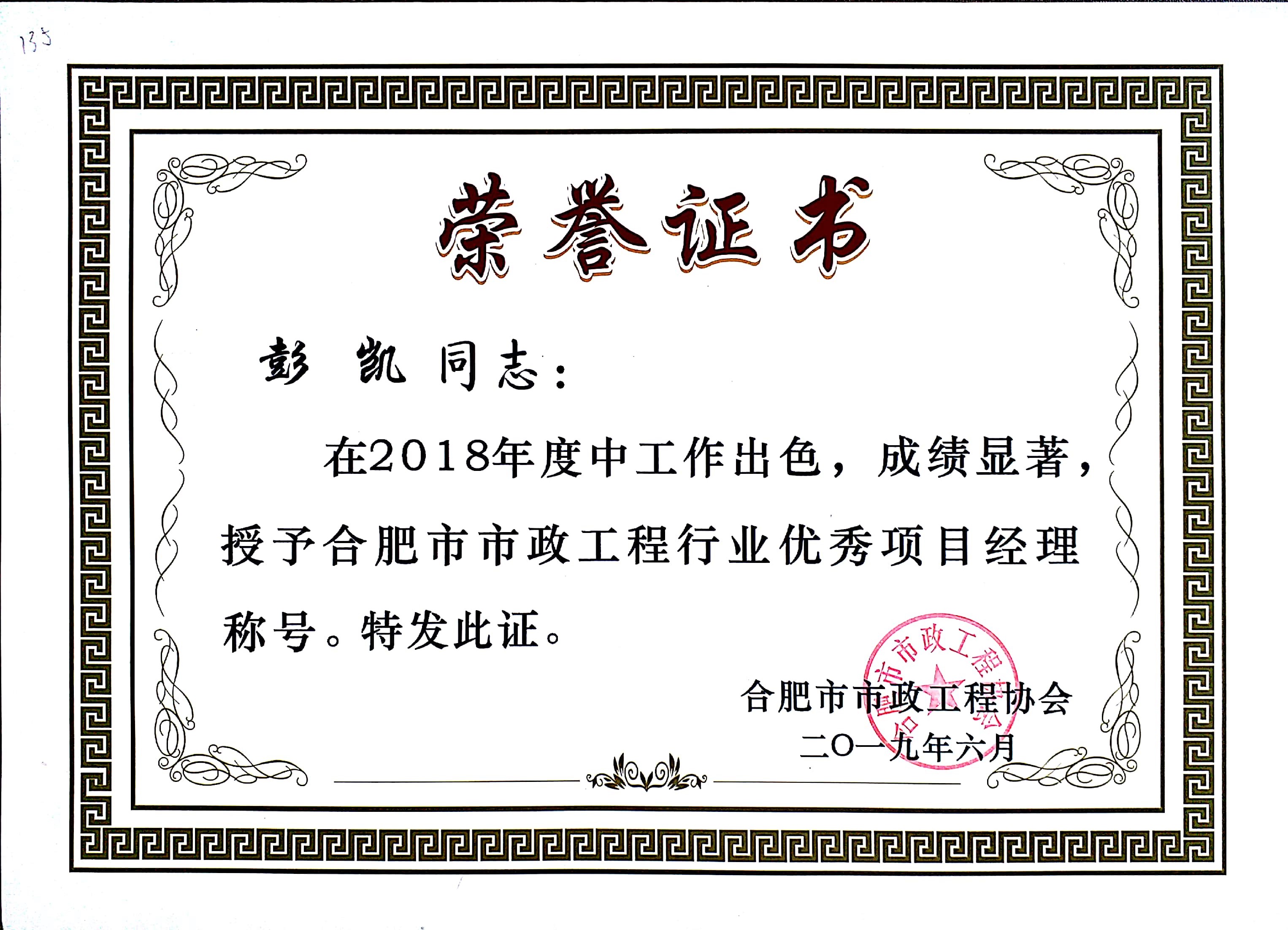 >彭凱2018市政優秀個人