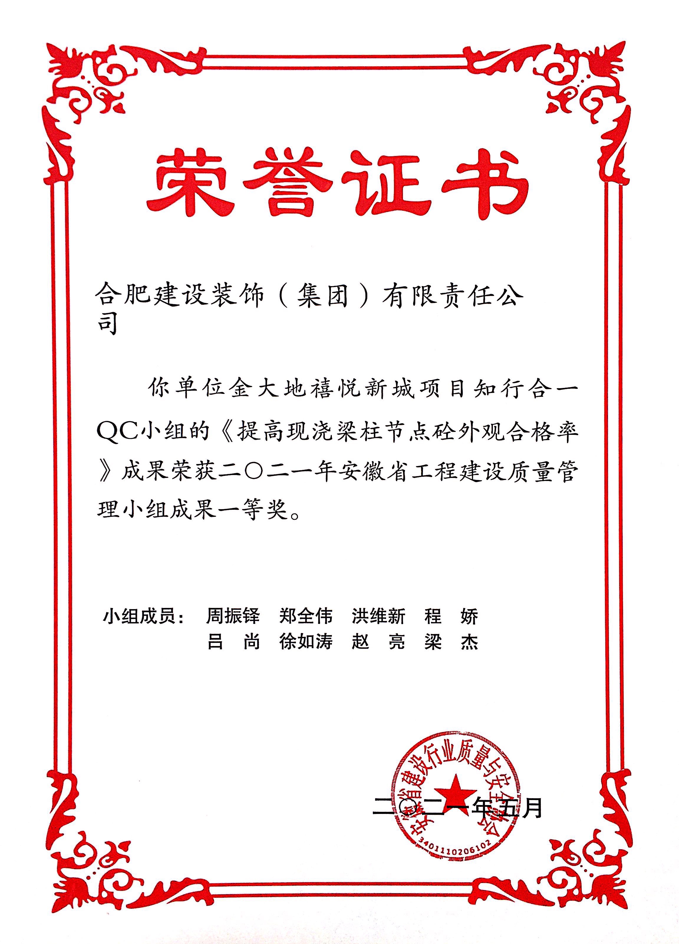 >金大地禧悅新城項(xiàng)目知行合一QC 提高現(xiàn)澆梁柱節(jié)點(diǎn)