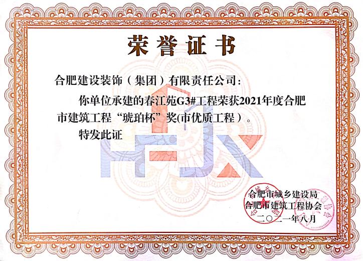 >春江苑G3#--2021年度合肥市建筑工程“琥珀杯”獎(市優質工程)