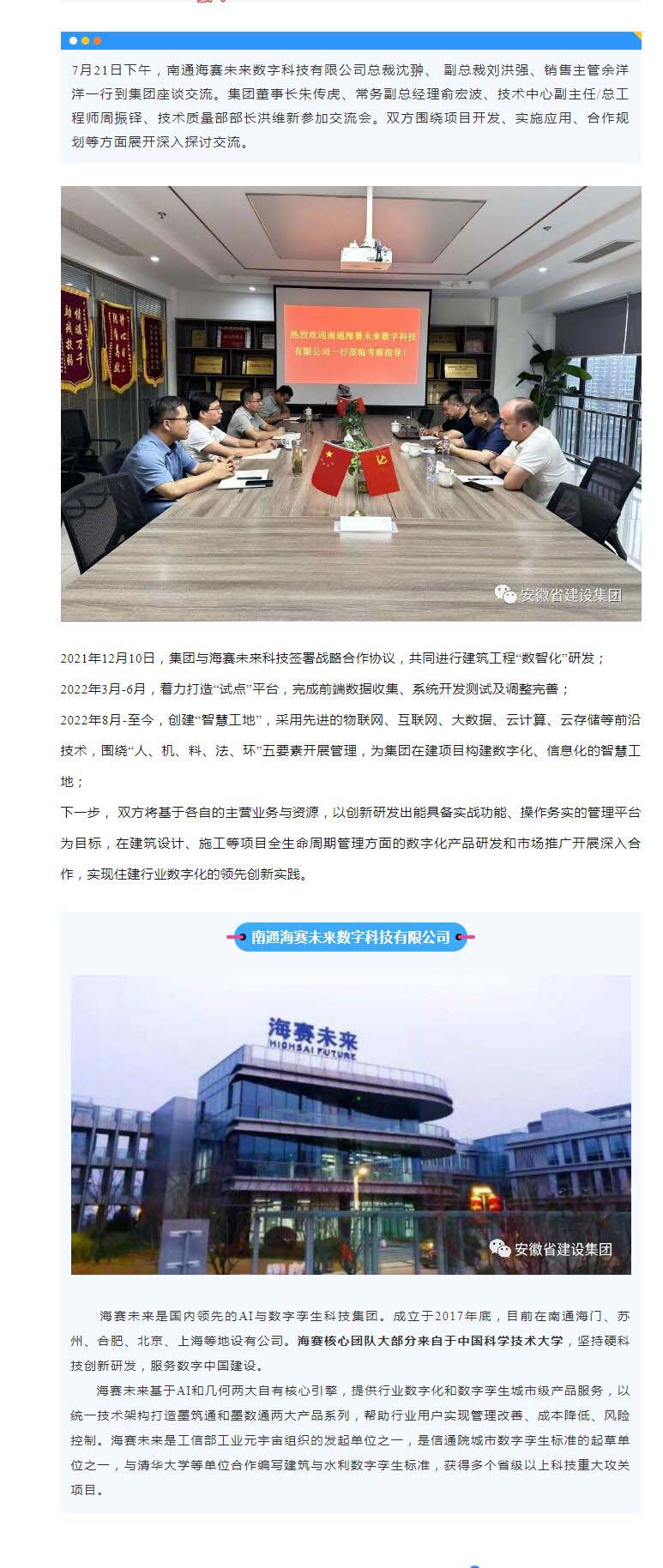 >南通海賽未來數(shù)字科技有限公司到集團(tuán)座談交流