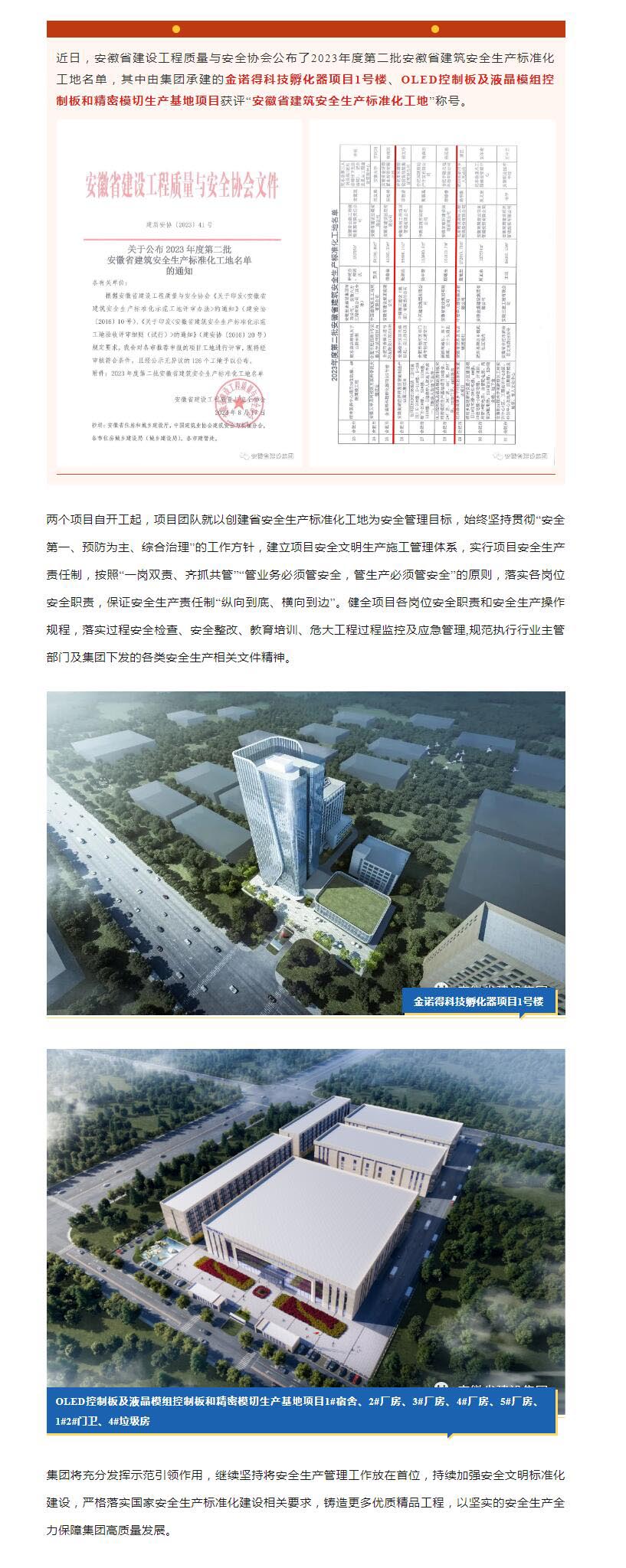 >集團新增兩個“安徽省建筑安全生產(chǎn)標準化工地”
