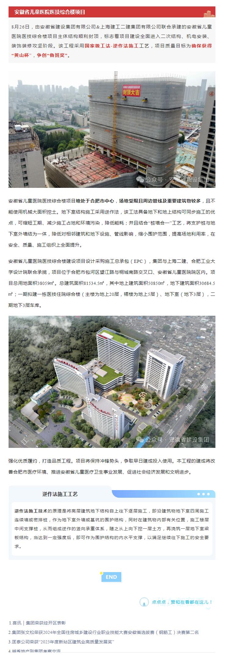 >喜訊 | 安徽省兒童醫(yī)院醫(yī)技綜合樓項(xiàng)目主體結(jié)構(gòu)順利封頂