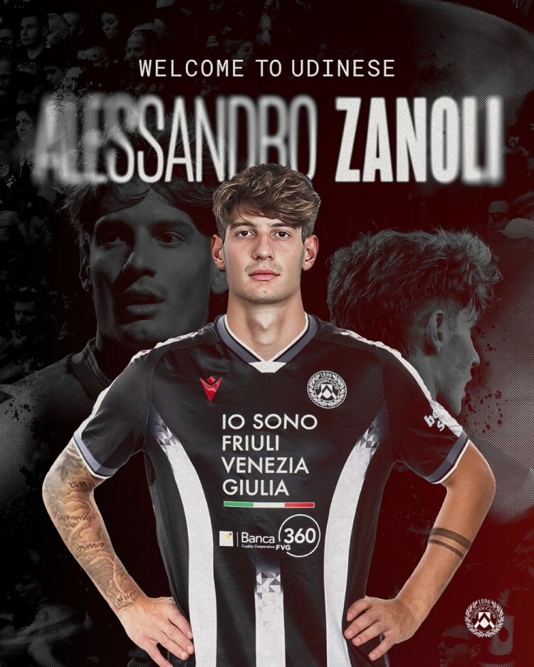 官方:24歲后衛扎諾利正式加盟烏迪內斯,方式為租借+強制買斷