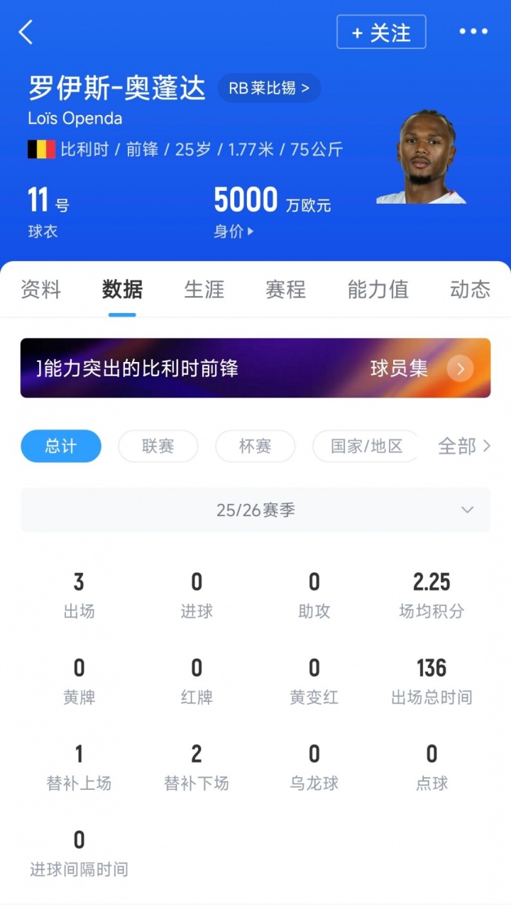 25歲的奧蓬達司職前鋒,上賽季為萊比錫各項賽事45場13球7助攻,德轉身價5000萬歐元。