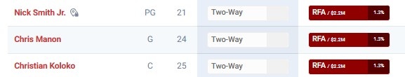 在簽下小尼克-史密斯之后,湖人已經有三份雙向合同,雙向合同名額已滿,分別是:小尼克-史密斯、科洛克和克里斯-馬農。