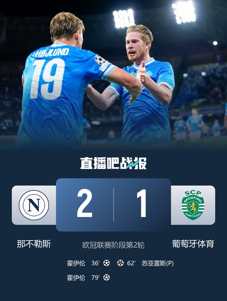 第79分鐘,德布勞內(nèi)左路傳中,霍伊倫搶在門(mén)將身前頭球破門(mén)!那不勒斯再度超出比分,2-1領(lǐng)先葡萄牙體育↓