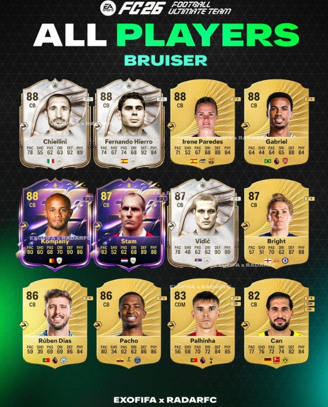 FC26金肌肉球員曝光:現役加布里埃爾、魯本-迪亞斯、帕喬在列