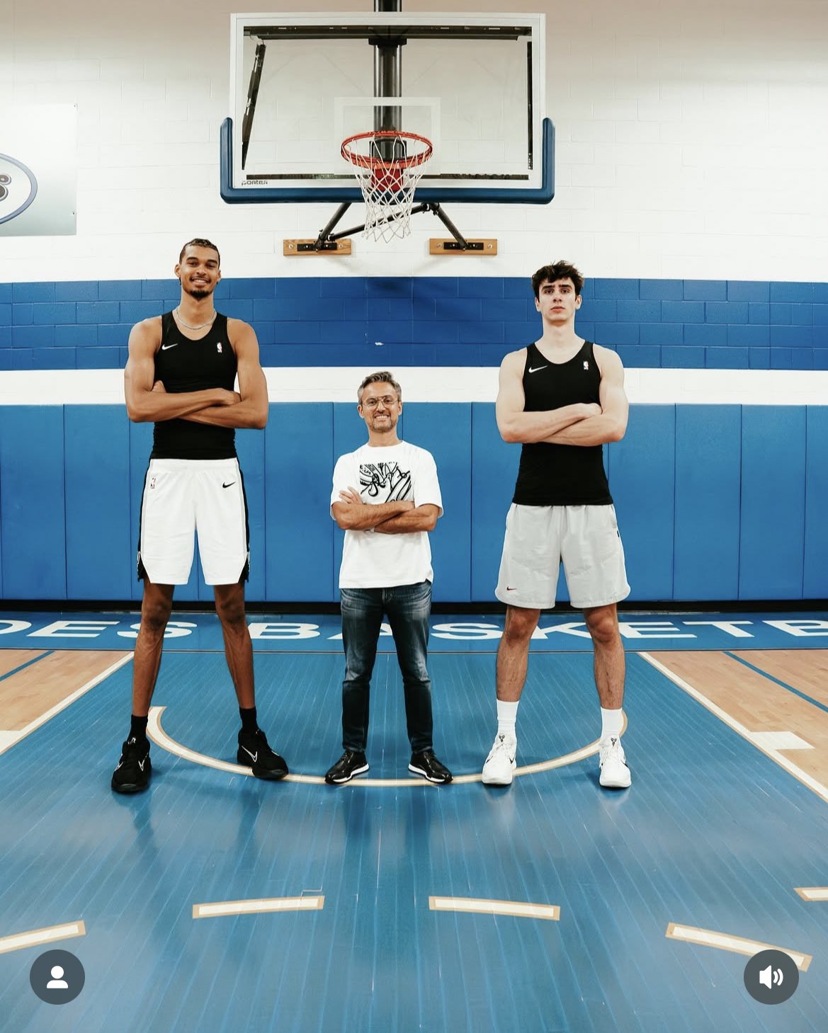 文班和Maxime Raynaud一同訓(xùn)練,后者是今年參選的新秀中鋒...