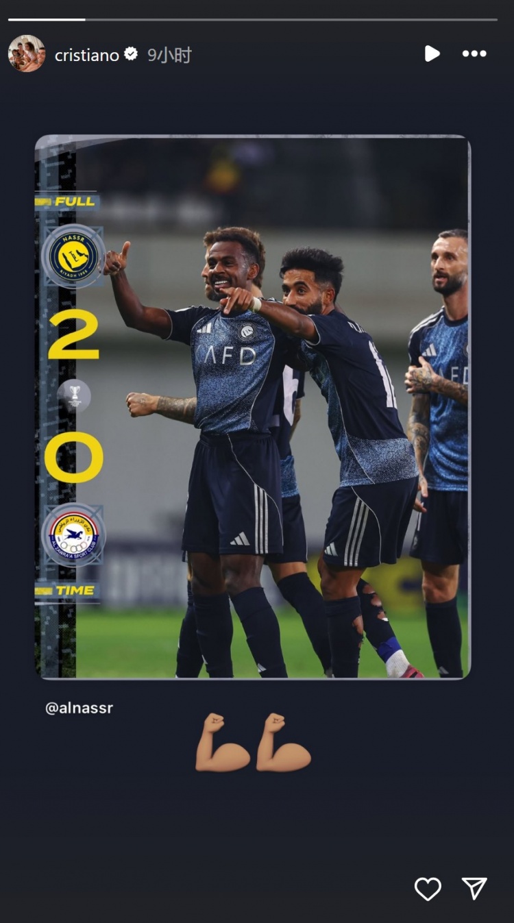 輪休!C羅社媒曬比賽海報(bào),慶祝利雅得勝利亞冠取勝