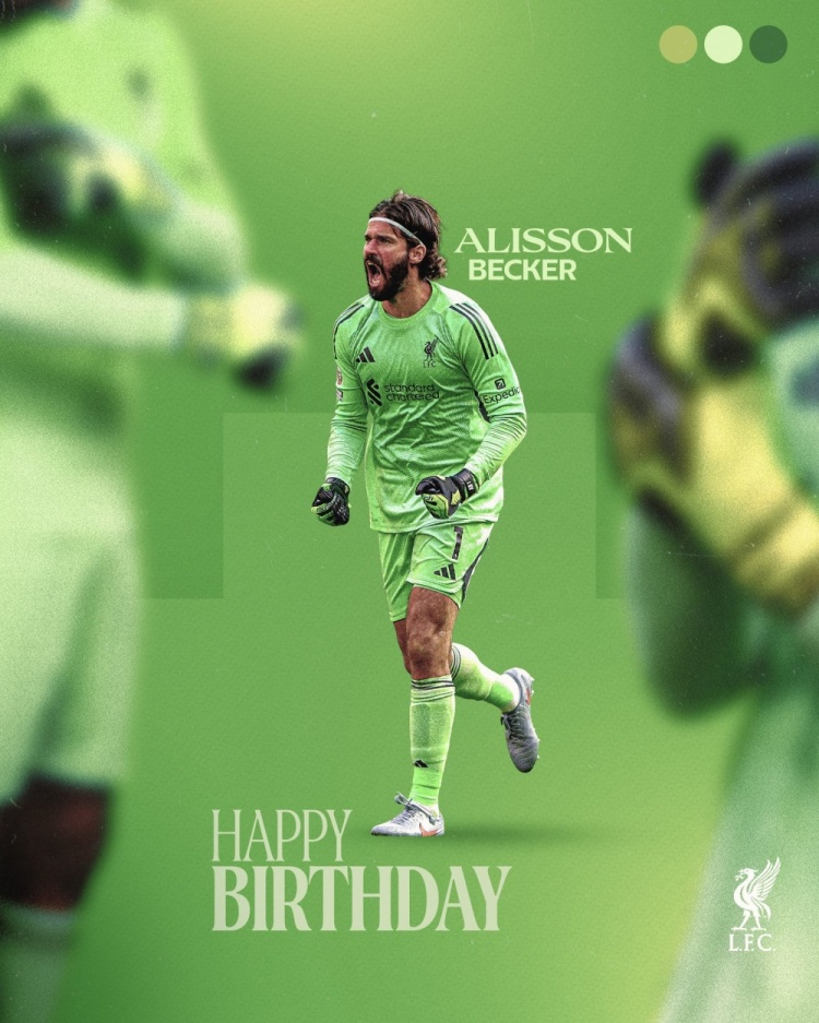 10月2日訊 今天是利物浦門將阿利森的33歲生日,利物浦官方為他送上祝福。利物浦官方社媒曬出為阿利森制作的生日海報(bào),配文...