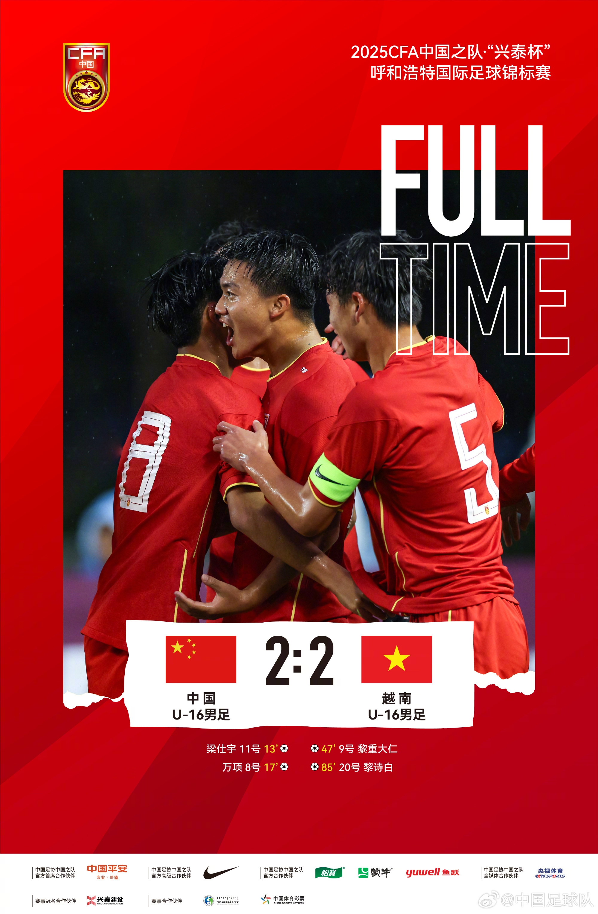 在剛剛結(jié)束的2025CFA中國(guó)之隊(duì)·“興泰杯”呼和浩特國(guó)際足球錦標(biāo)賽第2輪比賽中,中國(guó)U-16男足2比2戰(zhàn)平越南U-16...