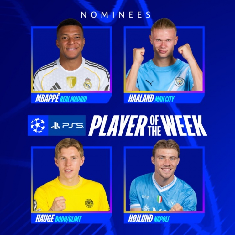 歐冠本周最佳球員候選:姆巴佩、哈蘭德、海于格、霍伊倫