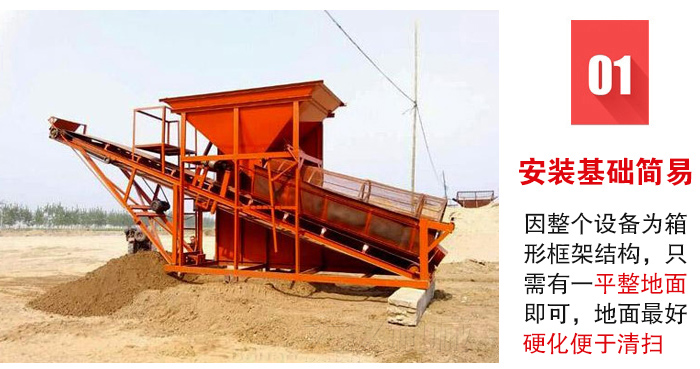 設(shè)備的高度整體性便于施工現(xiàn)場存放或轉(zhuǎn)場運(yùn)輸,拆裝部件只有成品堆料皮帶機(jī),松開底部固定螺栓和吊掛鋼絲繩,將成品皮帶機(jī)塞入主框架底面即可。