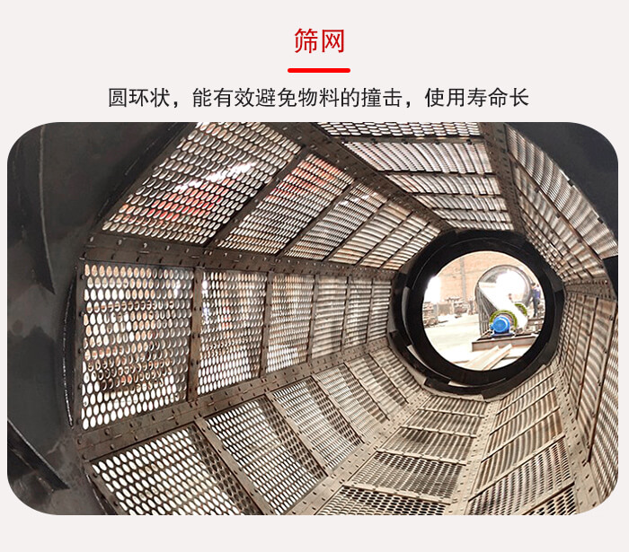 3,GTS滾筒篩篩網(wǎng)是圓環(huán)狀,能有效避免物料的撞擊,使用壽命長。