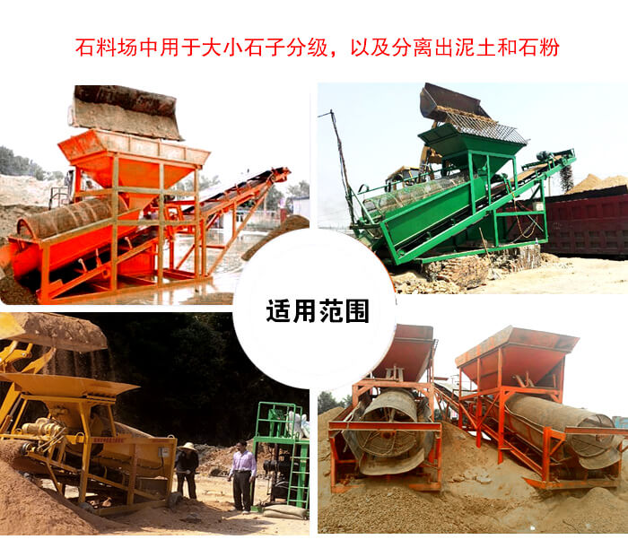 滾筒篩土同時(shí)對(duì)物料的適應(yīng)能力強(qiáng),粘性、濕度大、臟、雜等各種性質(zhì)的物料都能篩分。石料場(chǎng)中用于大小石子分級(jí),以及分離出泥土和石粉?;みx礦行業(yè)用于大小塊狀物分級(jí)及分離粉狀物質(zhì)。