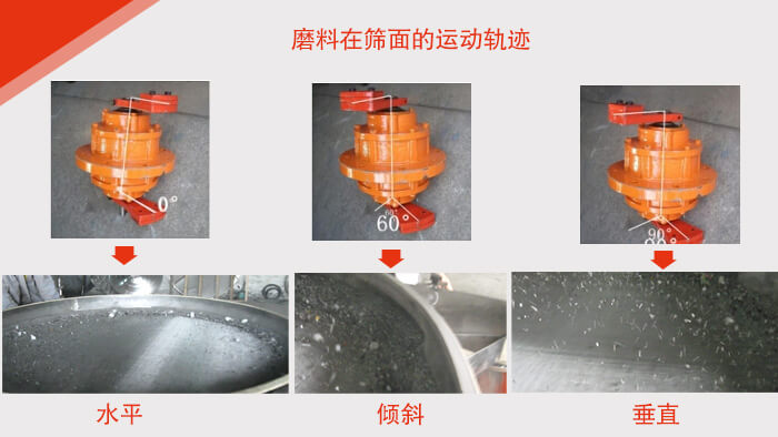 磨料振動(dòng)篩是一種高精度細(xì)粉篩分機(jī)械,工作原理是由直立式電機(jī)作激振源,電機(jī)上、下兩端安裝有偏心重錘,將電機(jī)的旋轉(zhuǎn)運(yùn)動(dòng)轉(zhuǎn)變?yōu)樗?、垂直、傾斜的三次元運(yùn)動(dòng),再把這個(gè)運(yùn)動(dòng)傳遞給篩面。調(diào)節(jié)上、下兩端的相位角,可以改變物料在篩面上的運(yùn)動(dòng)軌跡,由于其振動(dòng)運(yùn)轉(zhuǎn)原理很多企業(yè)也稱之為“三次元振動(dòng)篩分過濾機(jī)”,根據(jù)外形結(jié)構(gòu)被部分客戶稱呼為圓形篩,從材質(zhì)上分標(biāo)準(zhǔn)型旋振篩和普通型旋振篩的,標(biāo)準(zhǔn)型的與物料接觸部分為304不銹鋼材質(zhì),底座為碳鋼材質(zhì),普通型的通體為普碳鋼材質(zhì)。