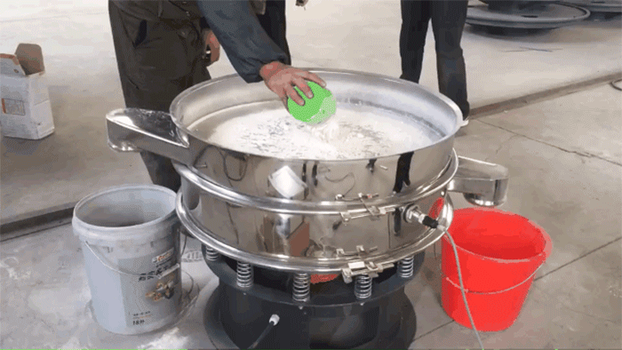 在三氯蔗糖的生產(chǎn)過程中要通過振動篩分機(jī)把三氯蔗糖粉除雜、分級、篩選等過程。在此過程中使用的振動篩分機(jī)設(shè)備大漢振動篩廠家推薦你使用超聲波振動篩。普通振動篩分機(jī)篩分三氯蔗糖粉時(shí)由于三氯蔗糖粉顆粒微小,容易造成堵塞振動篩分機(jī)的篩網(wǎng),導(dǎo)致產(chǎn)量低下或根本過不了網(wǎng)。但是三氯蔗糖粉超聲波振動篩分機(jī)是將220V、50Hz或110V、60Hz電能轉(zhuǎn)化為18KHz的高頻電能,輸入超聲換能器,將其變成18KHz機(jī)械振動,從而達(dá)到篩分和清網(wǎng)的目的,使得這種超微細(xì)粉篩分成為易事。它在傳統(tǒng)的振動篩基礎(chǔ)上在篩網(wǎng)上引入一個(gè)低振幅、高頻率的超聲振動波(機(jī)械波),以改善超微細(xì)分體的篩分性能。特別適合高附加值精細(xì)分體的用戶使用。