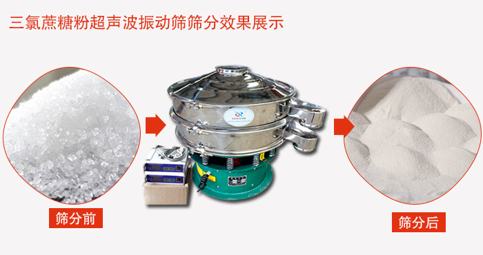 產(chǎn)品簡介:三氯蔗糖粉超聲波振動篩是超聲波技術(shù)與振動篩分技術(shù)的有機(jī)結(jié)合,它可以由普通篩分進(jìn)行簡單的加超聲波系統(tǒng)改造而成,利用超聲波振動篩進(jìn)行三氯蔗糖的篩分,能夠減少篩分過程的粉塵污染及產(chǎn)品消耗